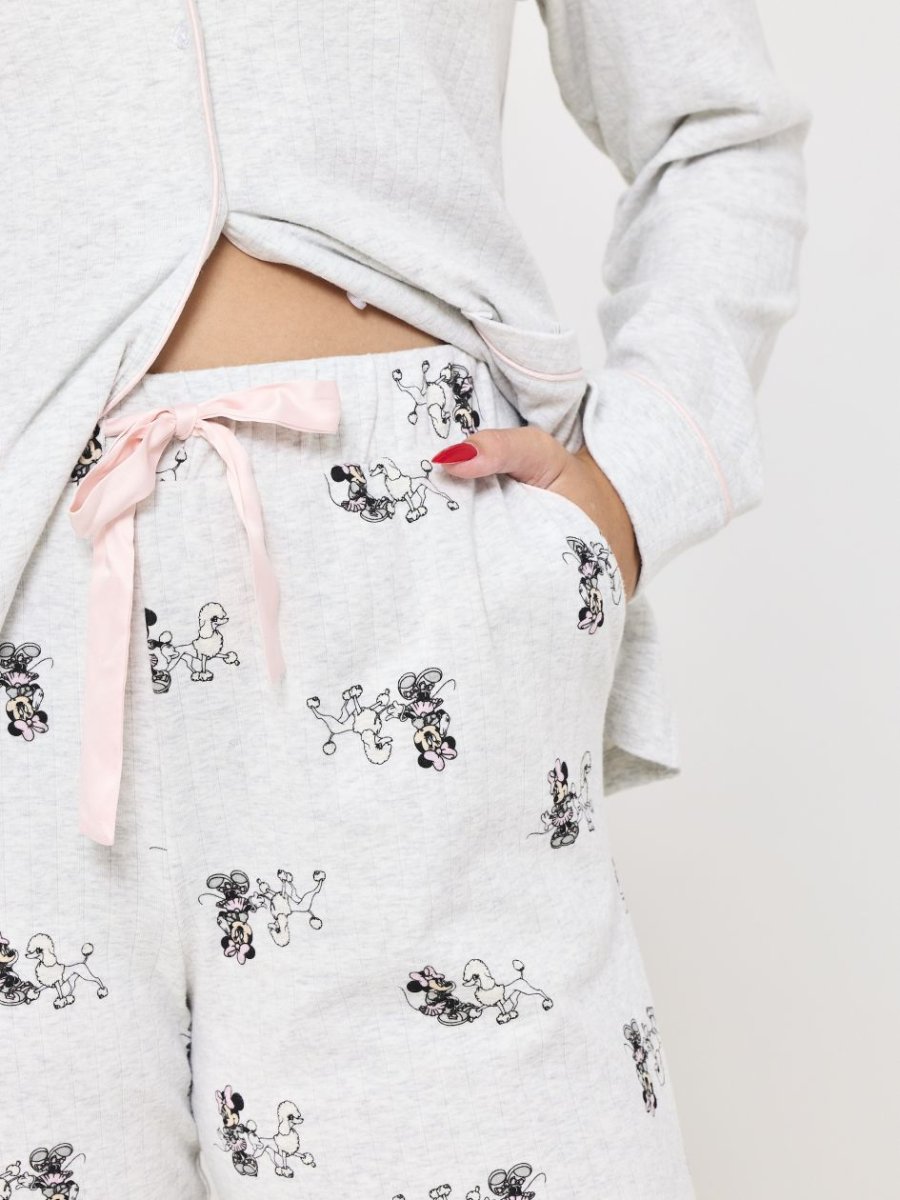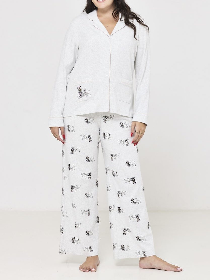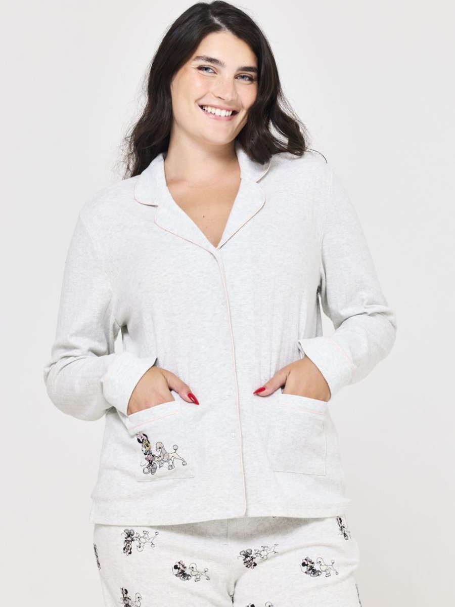 סט פיג’מה מכופתרת אריג דק MINNIE & POODLE
