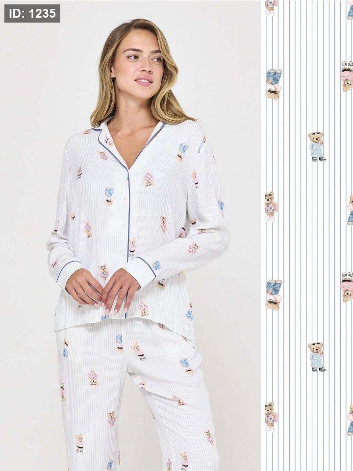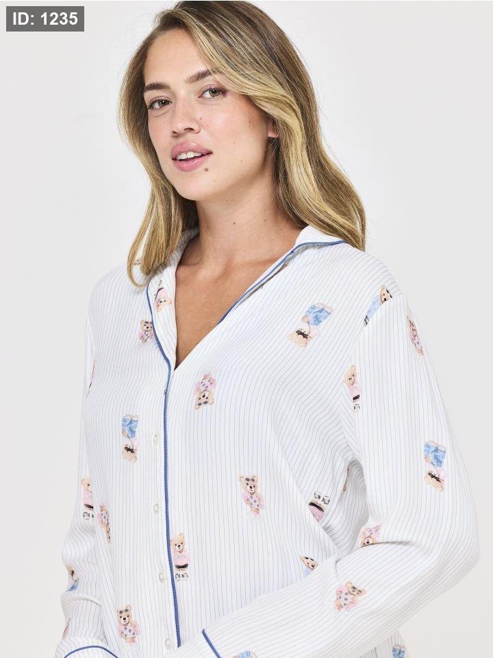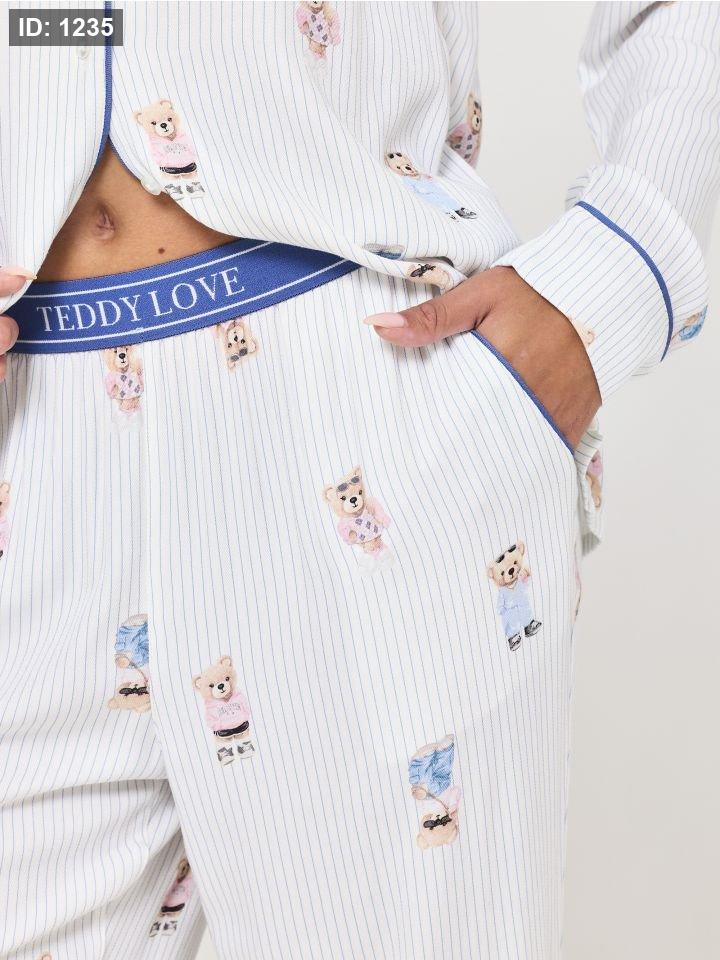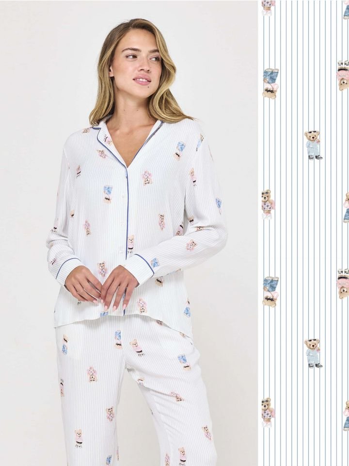 סט פיג’מה מכופתרת אריג דק TEDDY delta