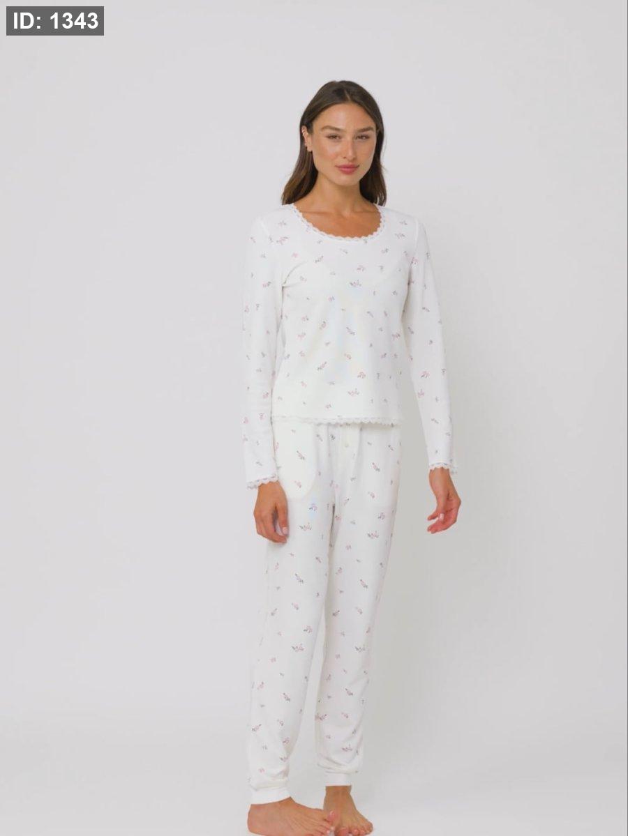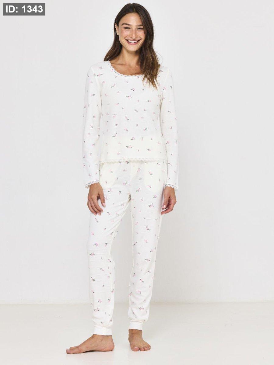 סט פיג’מה וופל ארוכה FLOWERS