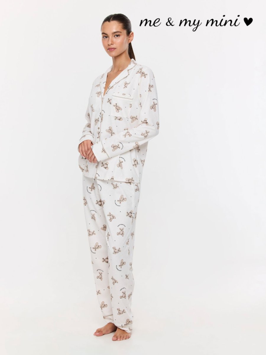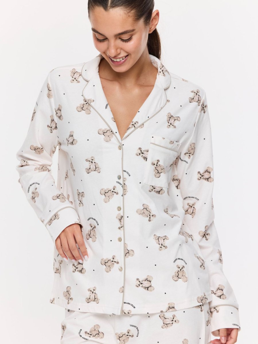 סט פיג’מה מכופתרת כותנה דובונים
