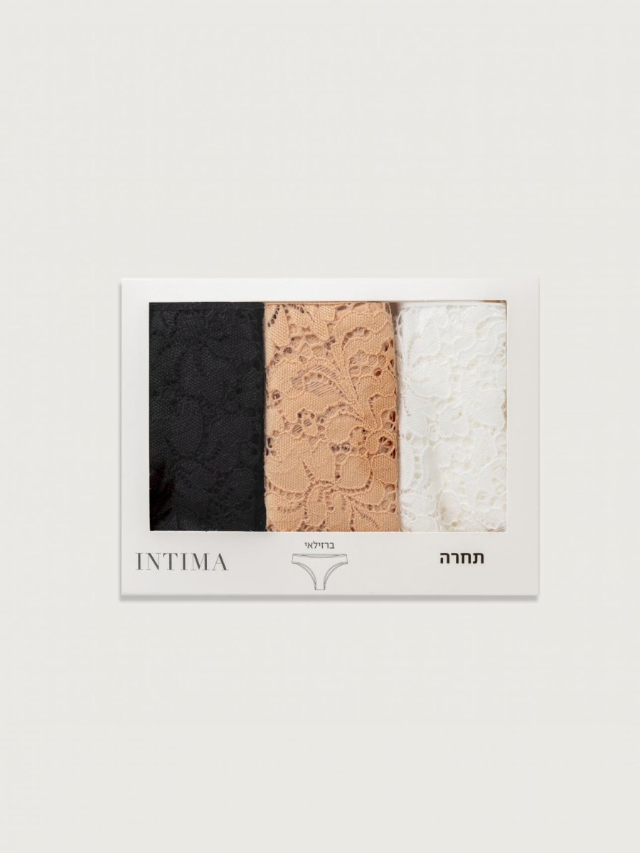מארז 3 תחתוני תחרה בגזרה ברזילאית