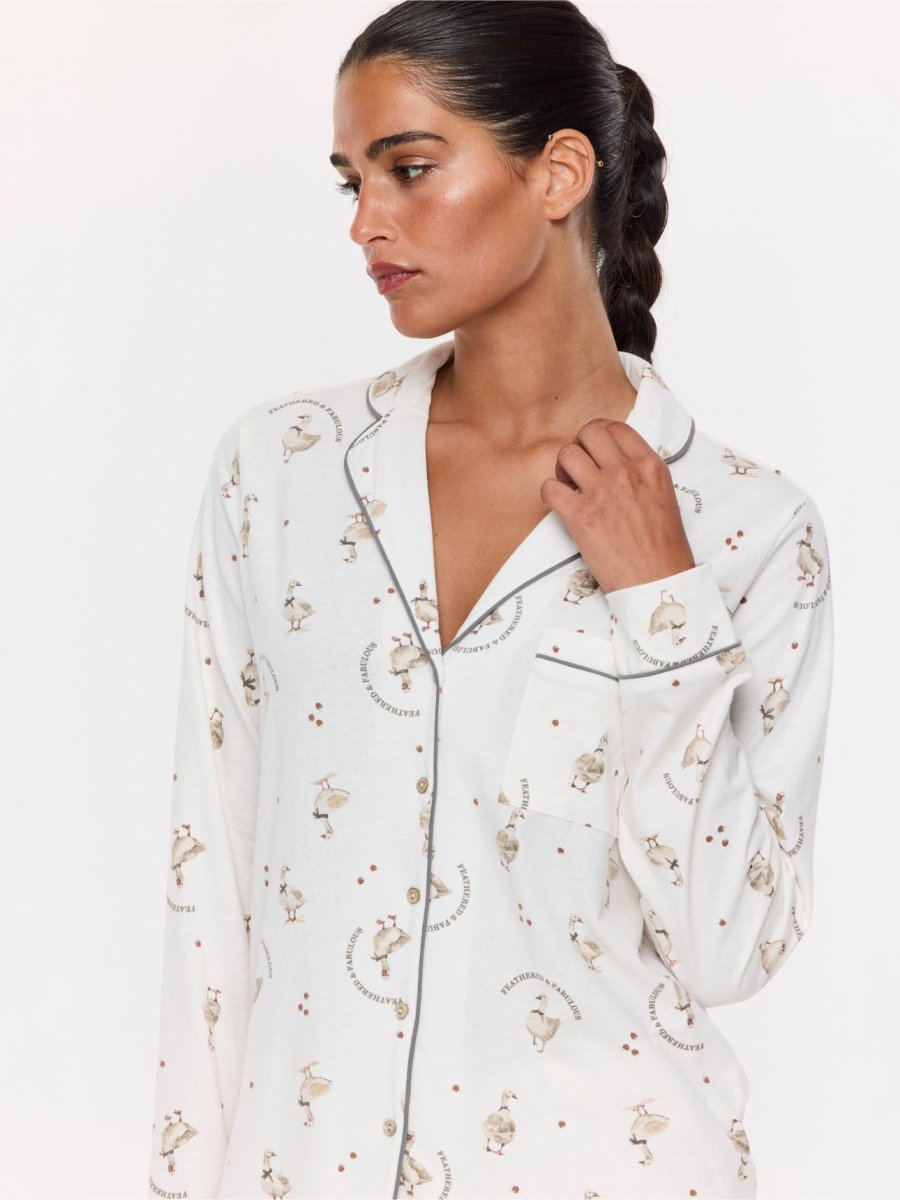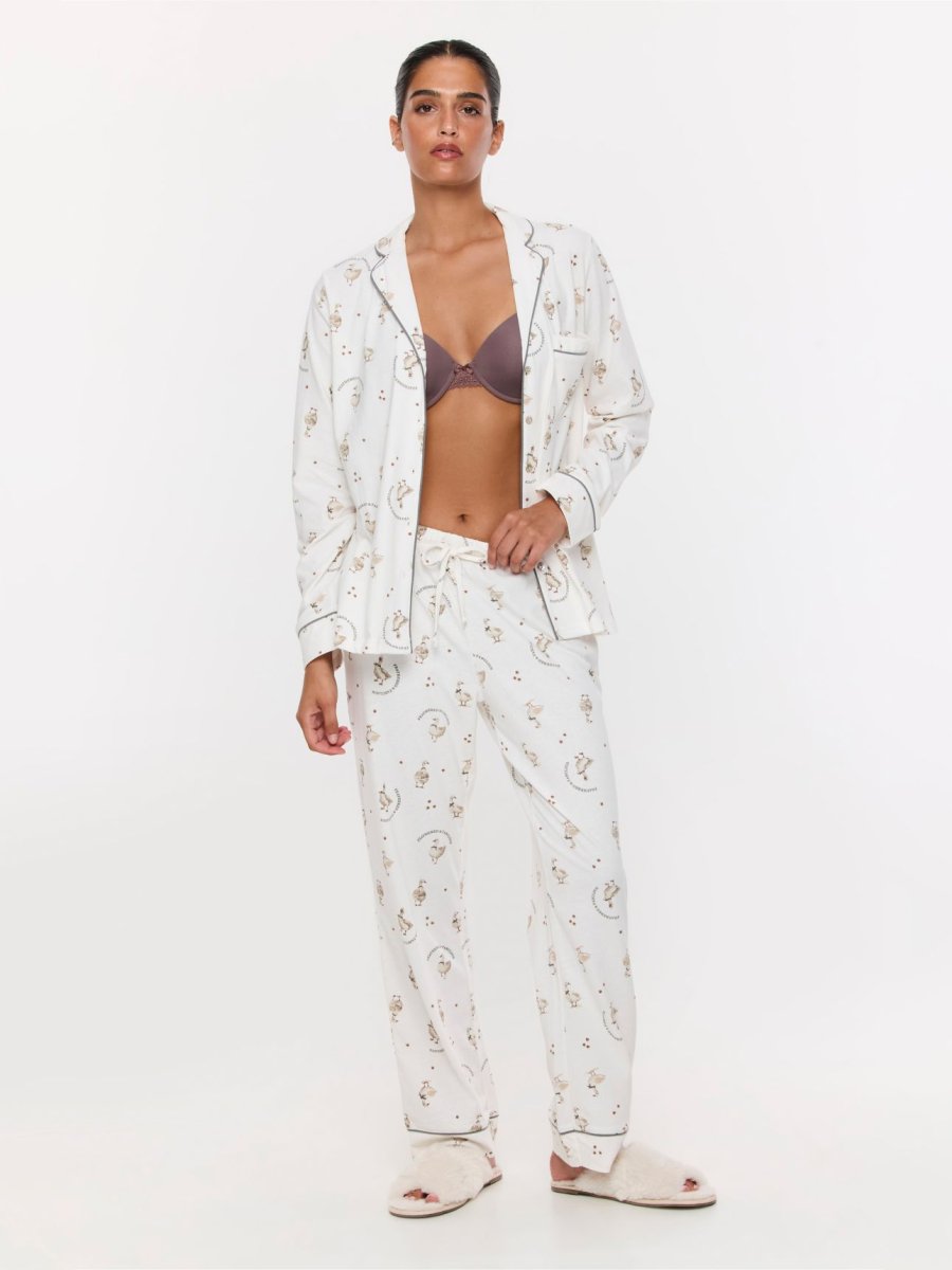 סט פיג’מה מודפסת מכותנה