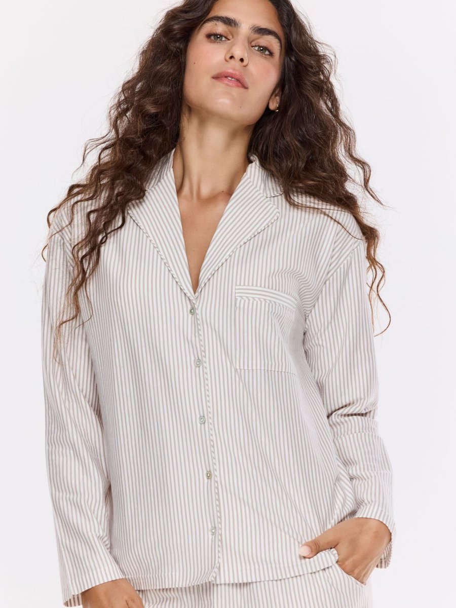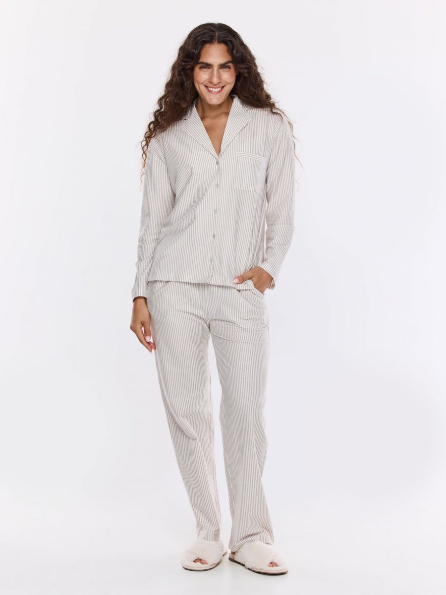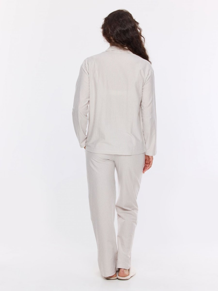 סט פיג’מה מכופתרת כותנה פסים