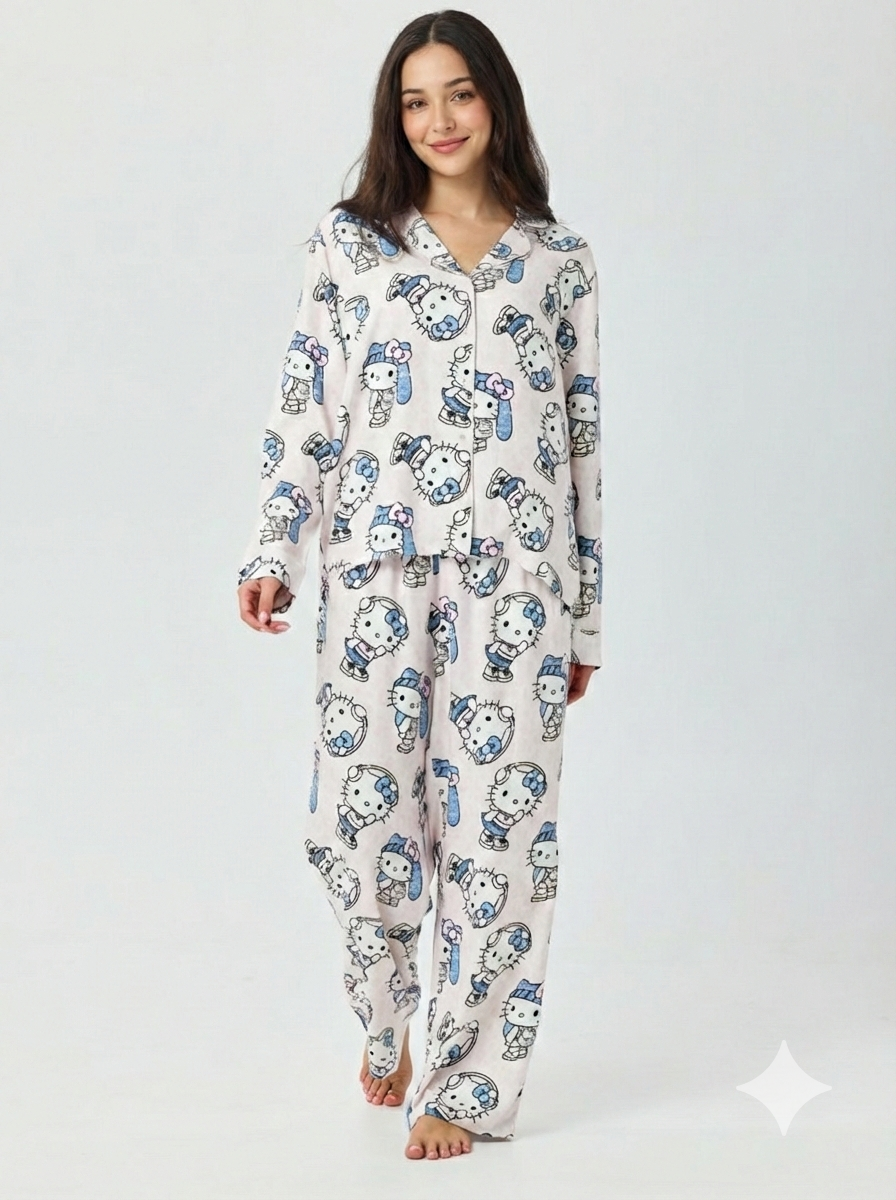 סט פיג’מה מכופתרת דקה HELLO KITTY