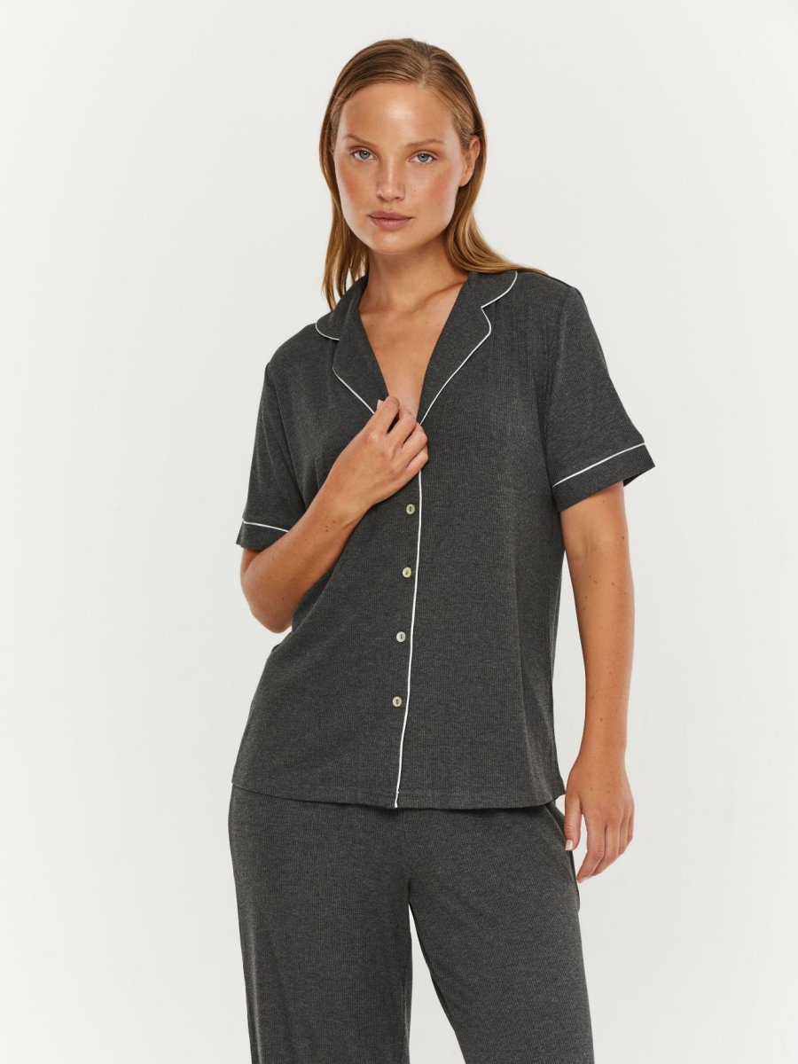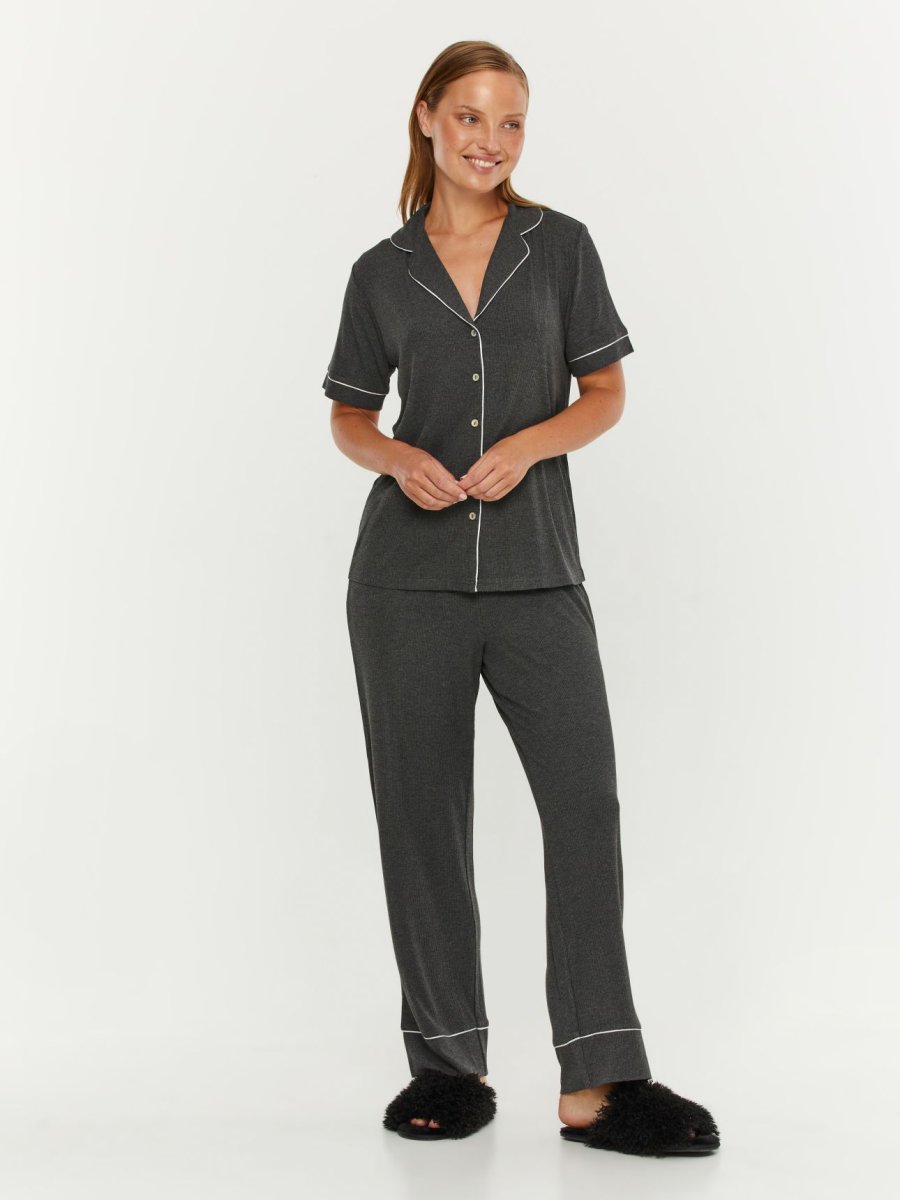 מארז פיג’מה מכופתרת ריב חולצה קצרה