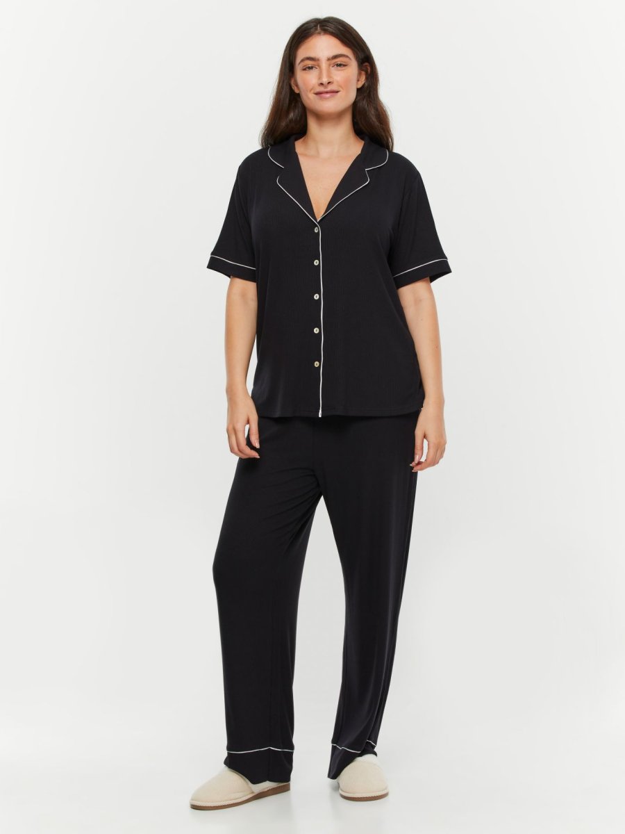 מארז פיג’מה מכופתרת ריב חולצה קצרה