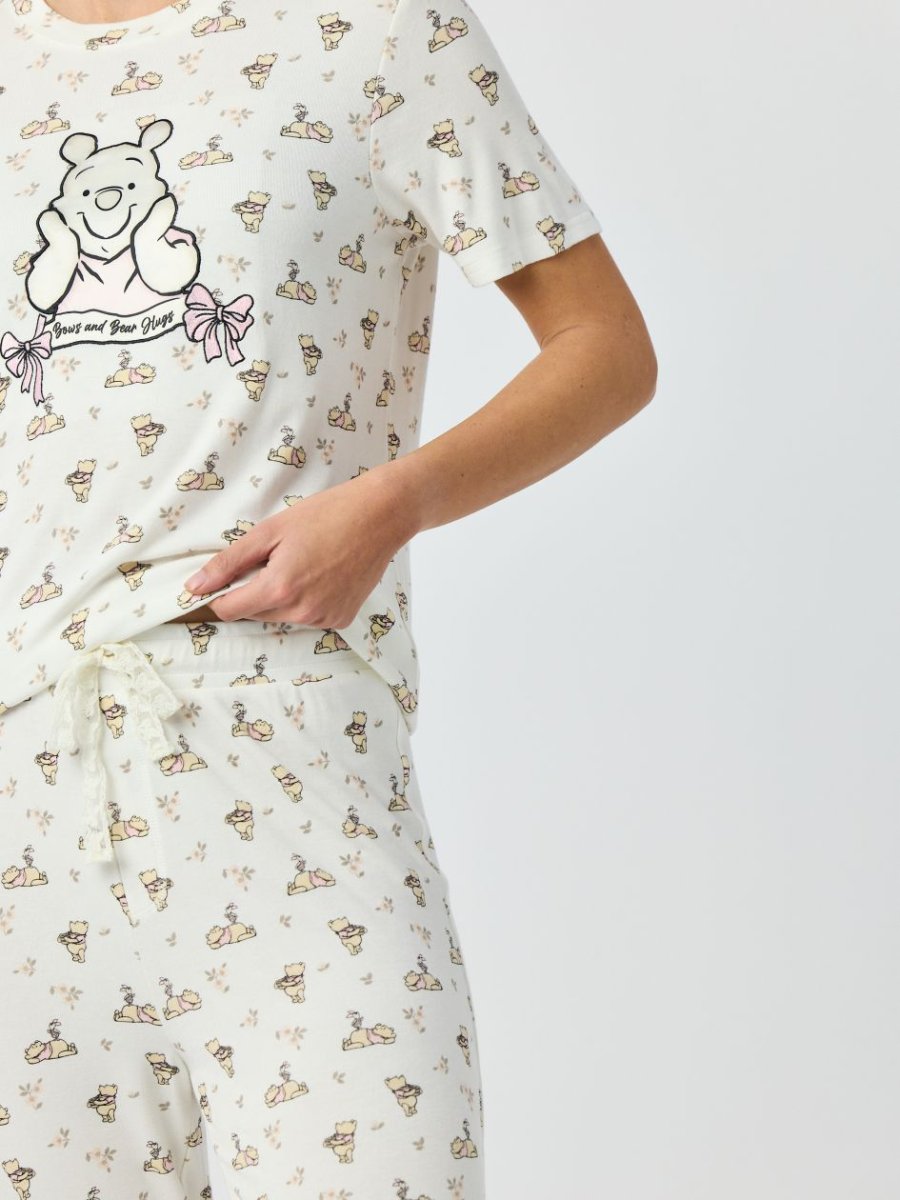 סט פיג’מה מכופתרת בעיטור תחרה עם כיתוב אישי