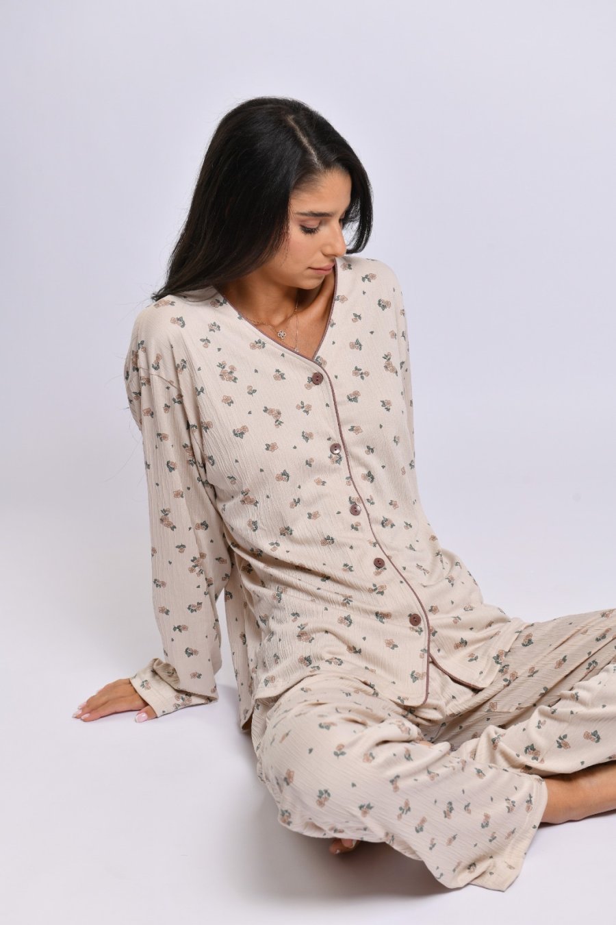 סט פיג׳מה מכופתרת פרחים
