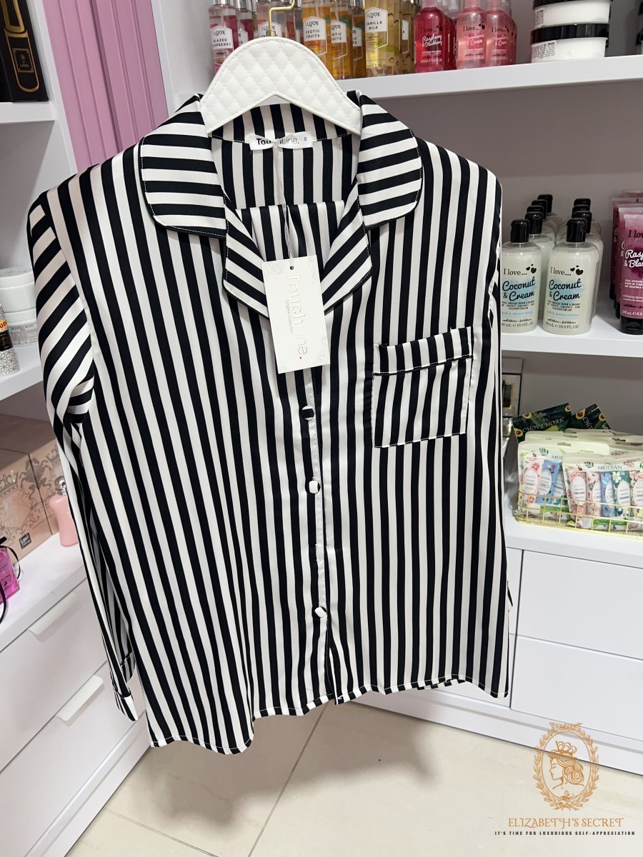 סט פיג׳מה כפתורים סאטן פסים