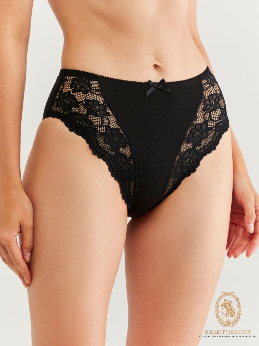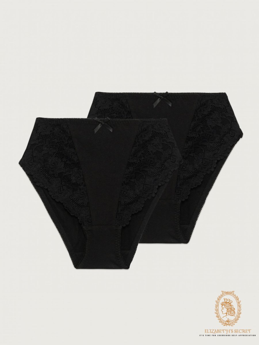 מארז 2 תחתונים בגזרה גבוהה כותנה בשילוב תחרה